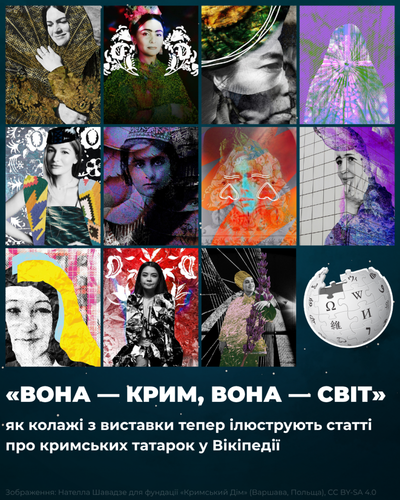 З 15 вересня до 15 жовтня 2025 року у Вроцлаві, в парку Оссолінеуму, проходила вулична виставка «Вона ― Крим, Вона ― Світ» про кримських татарок ― одинадцять виняткових жінок: як історичних постатей, так і сучасниць. Як колажі з виставки тепер ілюструють статті про кримських татарок у Вікіпедії — читайте у цьому дописі.