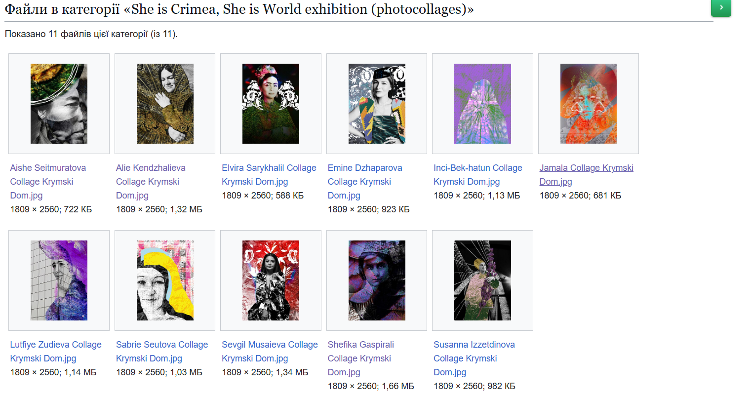 Усього на Вікісховище я завантажила 47 файлів ― 11 портретів-колажів та ще 36 фотографій вроцлавської виставки. Цими зображеннями проілюструвала 21 статтю у Вікіпедії ― польською, українською, англійською та російською мовами. Для шести з одинадцяти цих жінок ― це наразі єдині їхні зображення у Вікісховищі. Так, наприклад, у статті про письменницю Аліє Кенджалієву українською колаж з виставки зараз є її основним зображенням у картці особи. Про трьох героїнь, Айше Сеїтмуратову (Ayşe Seitmuratova), Джамалу (Camala) і Шефіку Гаспринську (Şefiqa Gasprinskaya), існують статті кримськотатарською мовою. Вдячна Марʼяні Сеньків за їх ілюстрування зображеннями зі стендів.