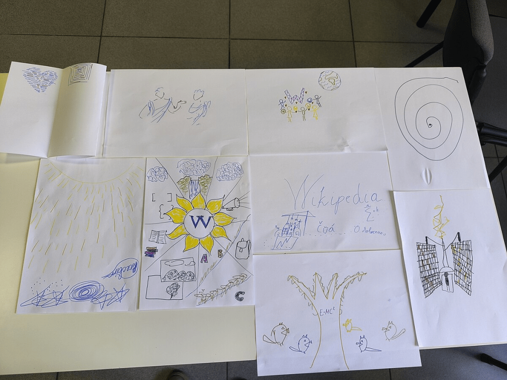 Наступні вправи — на командотворення вікіспільноти. Учасникам роздано білий папір формату А4 і фломастери. За допомогою цих матеріалів можна було в мікрогрупі чи одноосібно проілюструвати Вікіпедію чи сестринські проєкти. Наприклад, вікіпедистка з Харкова Ірина Бучнєва зобразила квітку соняшник із зображенням літери «W», від пелюсток якої відходять піктограми з ілюструванням основних вікіпроєктів. Інший учасник — Вячеслав Мамон — зобразив Вікімедіа у формі дерева, яке виточують у певну фігуру бобри-вікіпедисти. Кожен малюнок — це сприйняття вікіпедистом вікіпроєктів через власні асоціації.