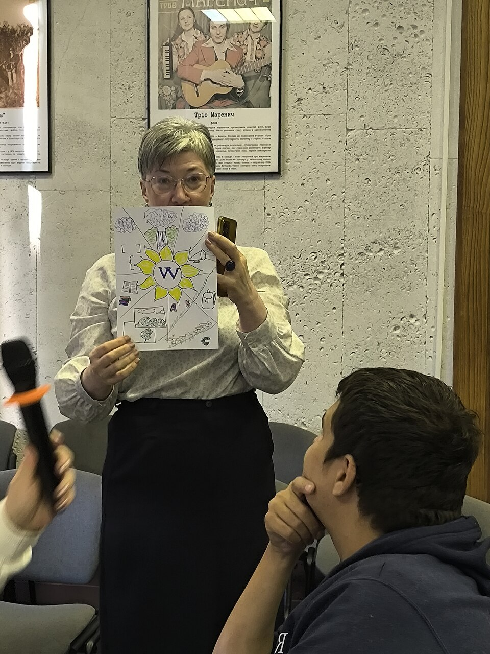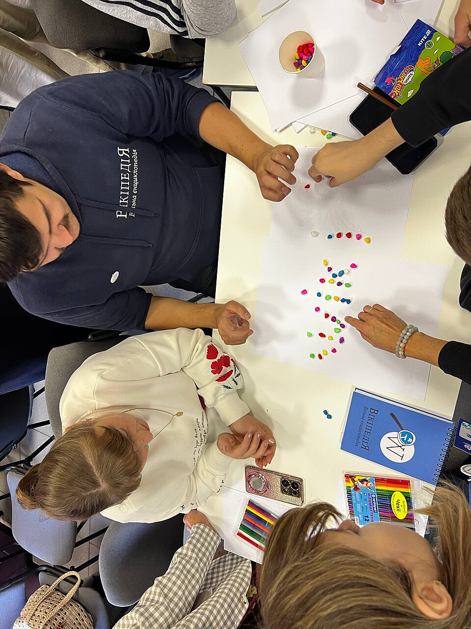 Визначали стихії вікіпедистів, відгадували культурні пам’ятки в різних регіонах, визначали свій настрій через архітектурні об’єкти, розвивали асоціативне мислення за метафоричними картками із зображеннями полотен Ольги Гайдамаки, створювали власні мистецькі шедеври і виконували вправи на командотворення.