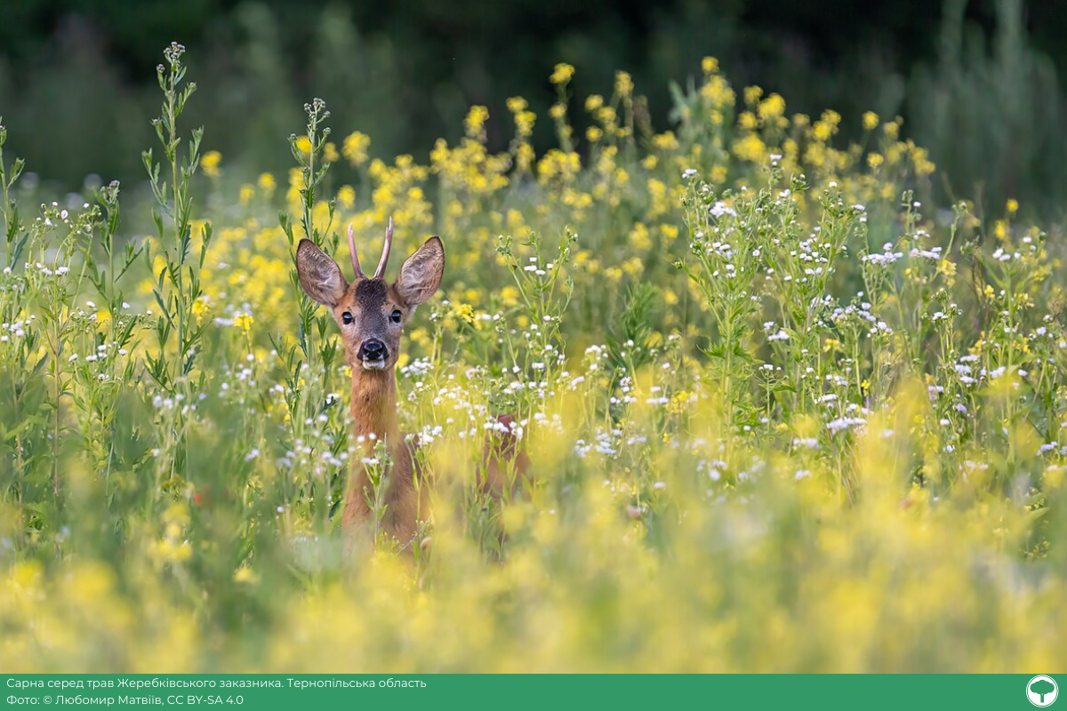 «Задля світлини “Сарна серед трав” довелось попотіти! У Жеребківському заказнику часто зустрічаються сарни, але вони дуже обережні істоти, і ще здалека помічають людей, втікаючи від них. Періодично і я навідуюсь у заказник, щоб поспостерігати за ними.