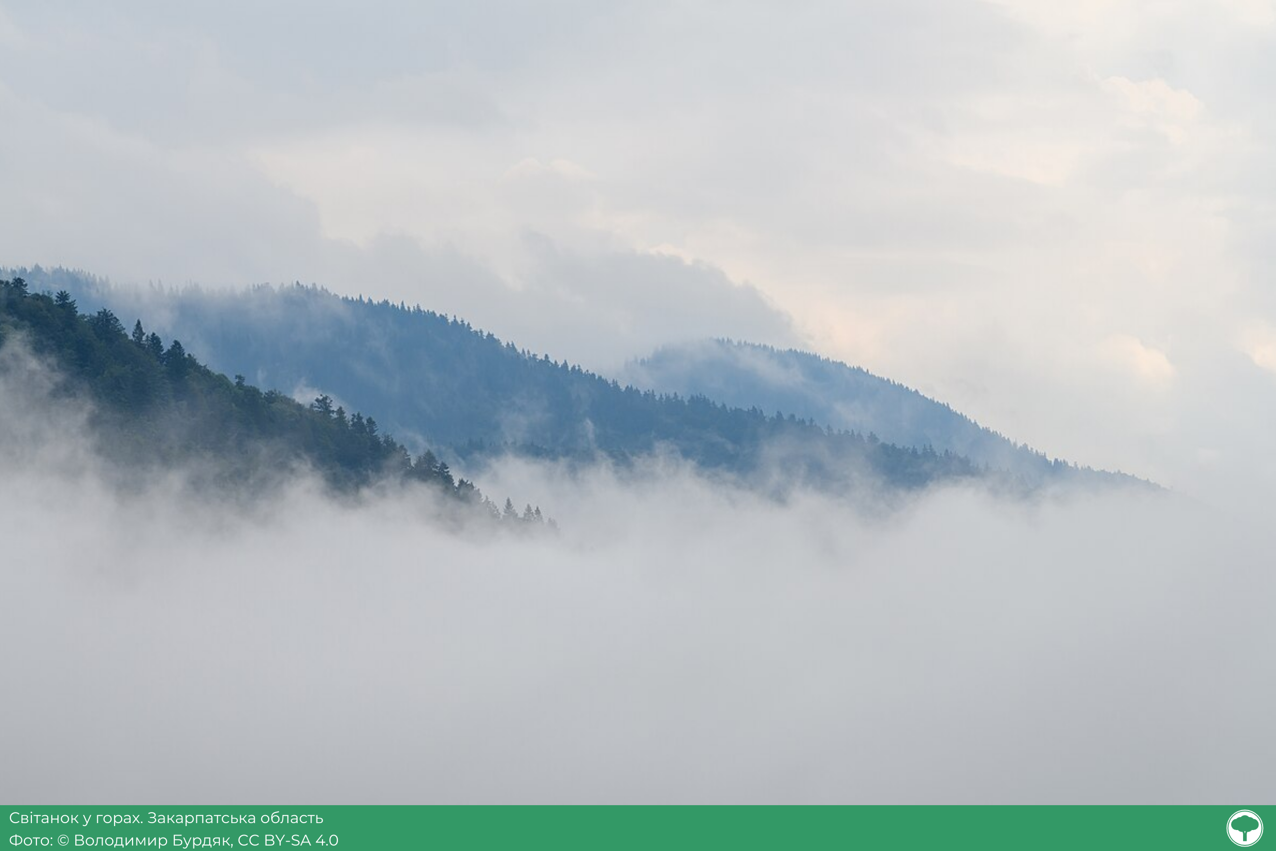 «Це була звичайна одна з багатьох поїздок на Закарпаття. Але цей день запам’ятався дуже гарним світанком…. Проїжджаючи крізь туман раптом появились вершини гір з лісом…. Я встиг зробити декілька кадрів і туман знов затягнув все навкруги. Це були лічені хвилини… просто вони були в потрібному місці і потрібний час.