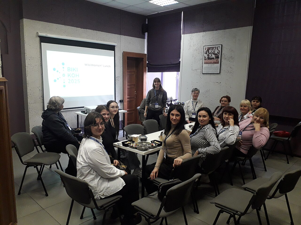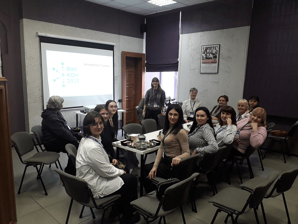 На обідній перерві першого дня, окрім можливості просто поспілкуватися, усі охочі могли доєднатися на WikiWomen* Lunch, де вікіпедистка Катерина Кіфа розповідала про зустріч WikiWomen* на Вікіманії 2025.