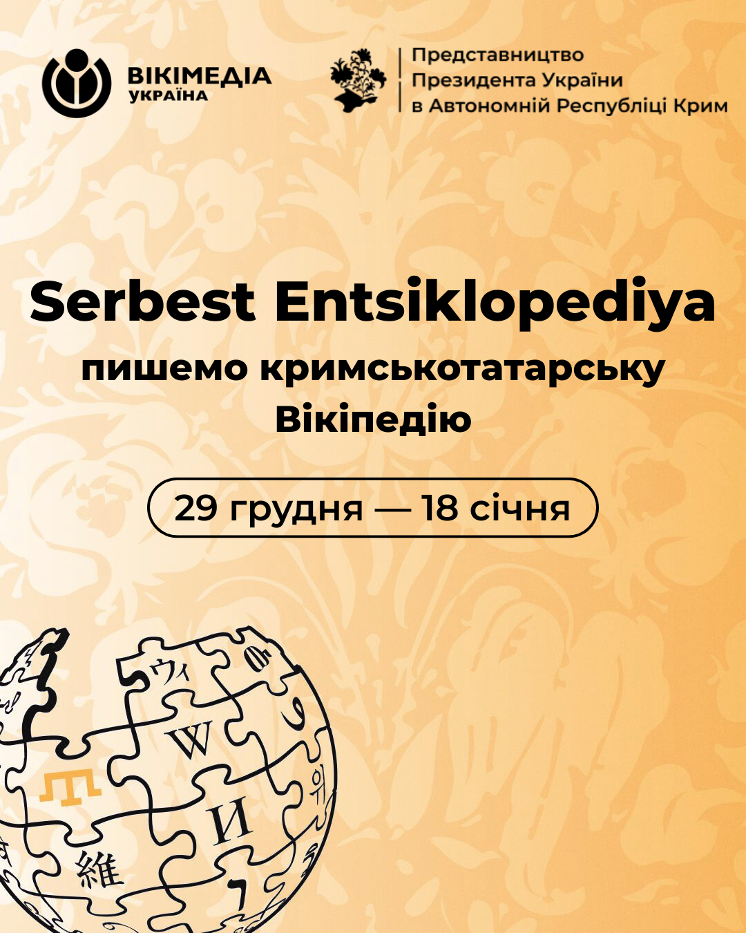 З 29 грудня по 18 січня відбудеться онлайн-марафон з нагоди річниці кримськотатарської Вікіпедії, яка відзначається 12 січня. Ініціативу підтримують Представництво Президента України в Автономній Республіці Крим та громадська організація «Вікімедіа Україна».