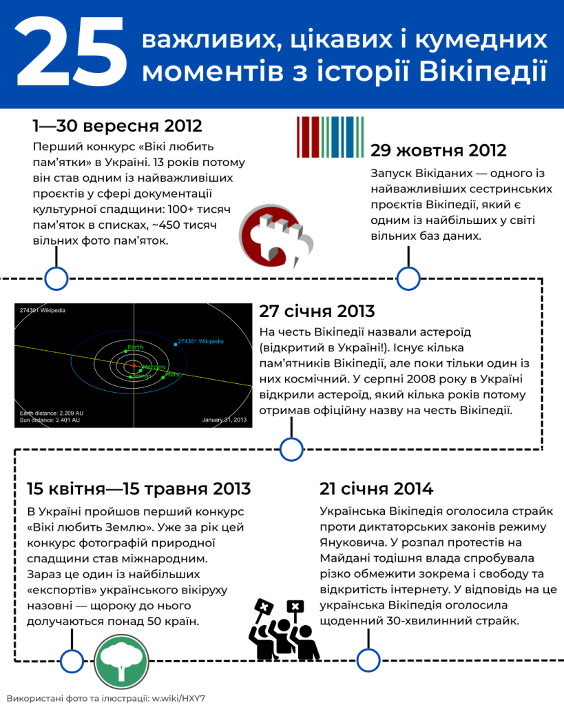 - 27 січня 2013 — на честь Вікіпедії назвали астероїд (відкритий в Україні!)