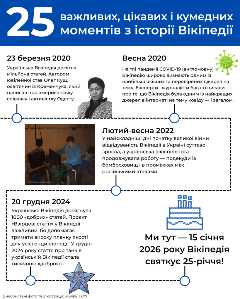 - Ми тут — 15 січня 2026 року Вікіпедія святкує 25-річчя!