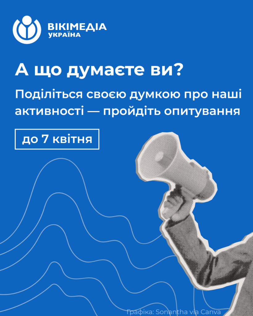 Нам важлива кожна думка і кожен голос у цьому опитуванні, тож запрошуємо заповнити його і вас і переслати своїм знайомим-вікімедійцям.