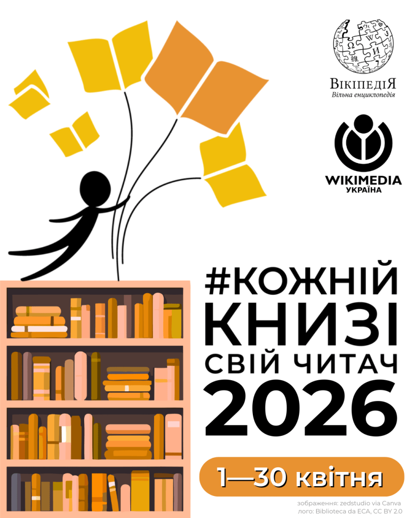 З 1 по 30 квітня у Вікіпедії знову проходить міжнародна кампанія «Кожній книзі — свій читач» (#EveryBookItsReader). Це нагода покращити статті про книги, письменників і письменниць, літературні премії, персонажів та все, що пов’язано з літературою.