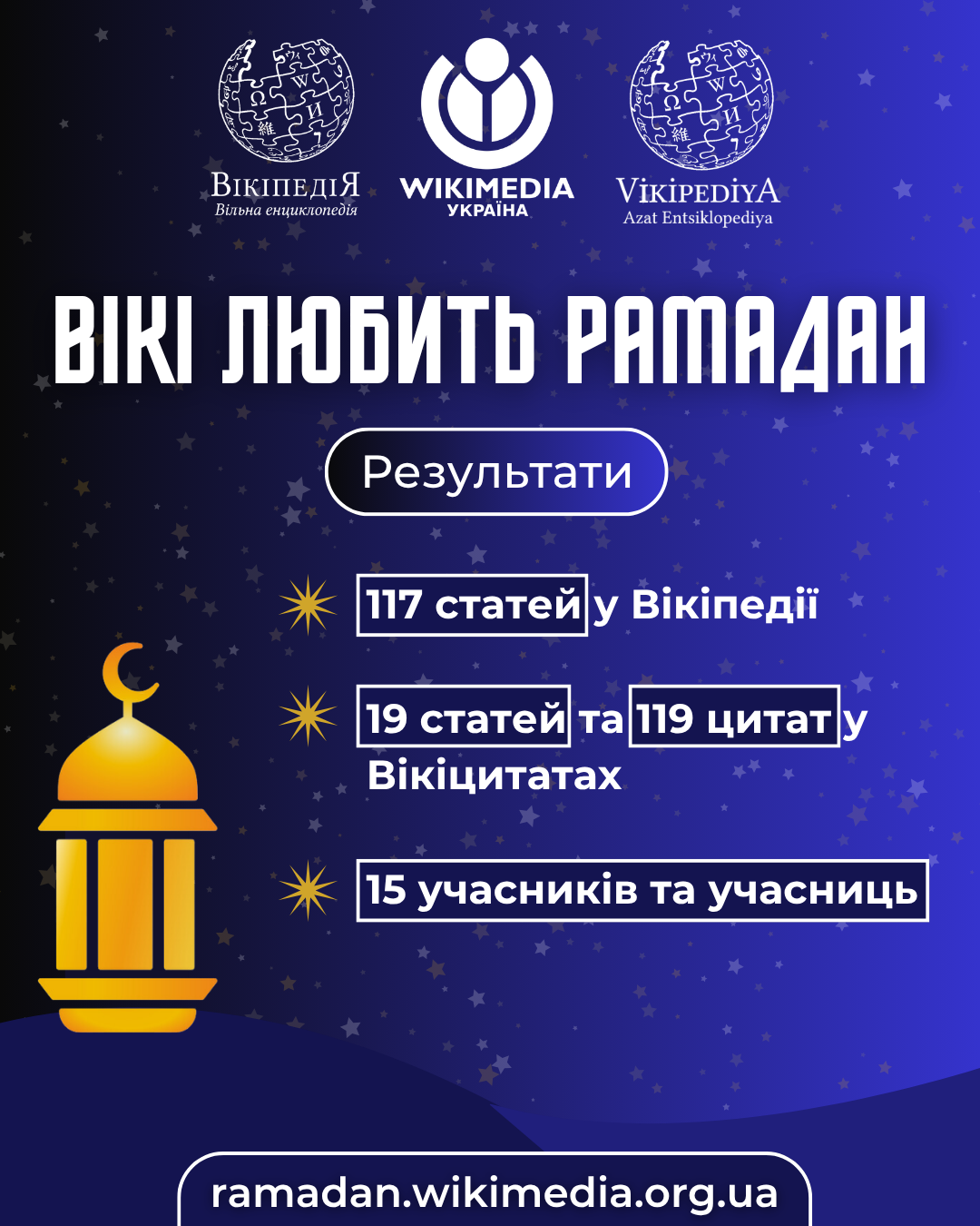 Кампанія охопила кілька вікіпроєктів і надала різні можливості для участі — через написання статей, додавання цитат та завантаження фото. Дякуємо всім, хто долучився та допоміг зробити ці теми більш видимими у вікіпросторі.Детальніше про кампанію: ramadan.wikimedia.org.ua