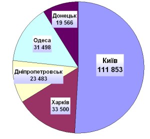 І, нарешті, категорія міст-мільйонерів. Тут, боротьбу за друге місце виграв Харків, випередивши на 2 тисячі відвідування Одесу. Проте більше половину трафіку все-таки скуштувала столиця:
